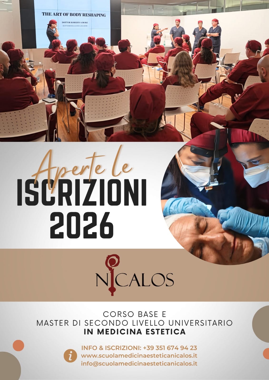 NOTE: in base alle continue evoluzioni in campo medico-estetico, il programma potrà essere soggetto a variazioni, che saranno debitamente comunicate agli iscritti.